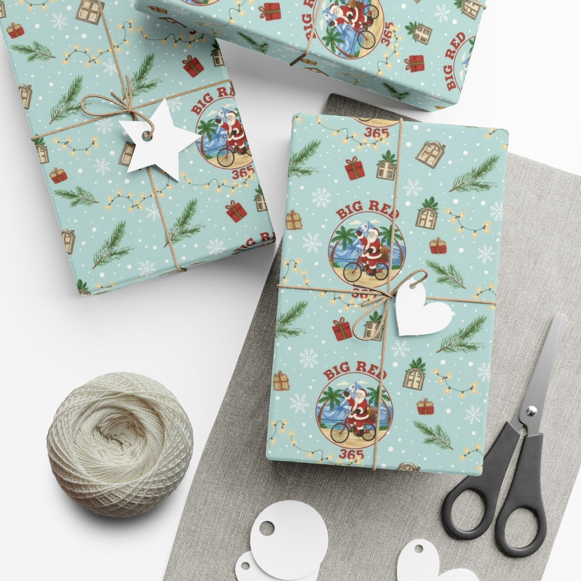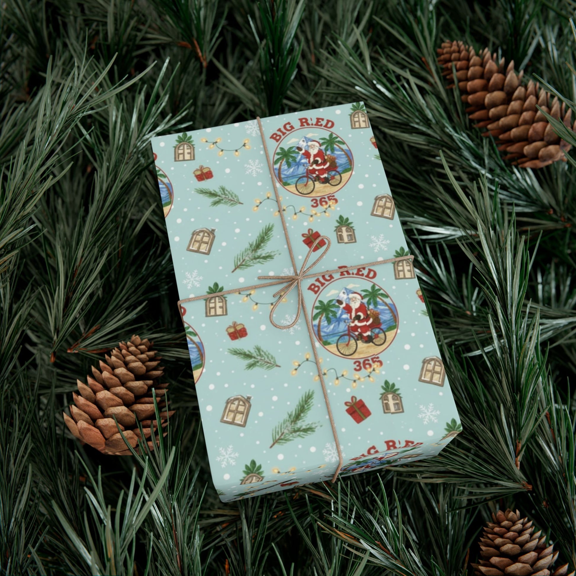 Big Red 365 Bicycle Santa Gift Wrap Paper | Christmas Wrapping Paper